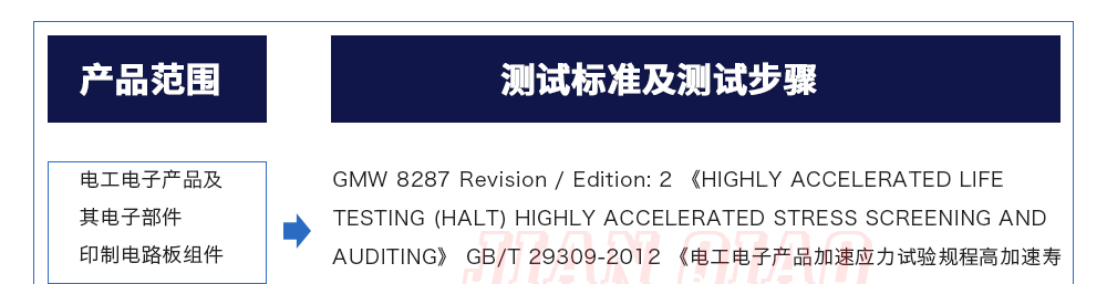 用途:HALT(Highly?Accelerated?Life?Test,高加速壽命試驗)-HASS(Highly?Accelerated?Stress?Screening,高加速應力篩選)、這是一種能夠提高產品可靠性的測試手段,能在短時間內激發出產品的缺陷及時改進