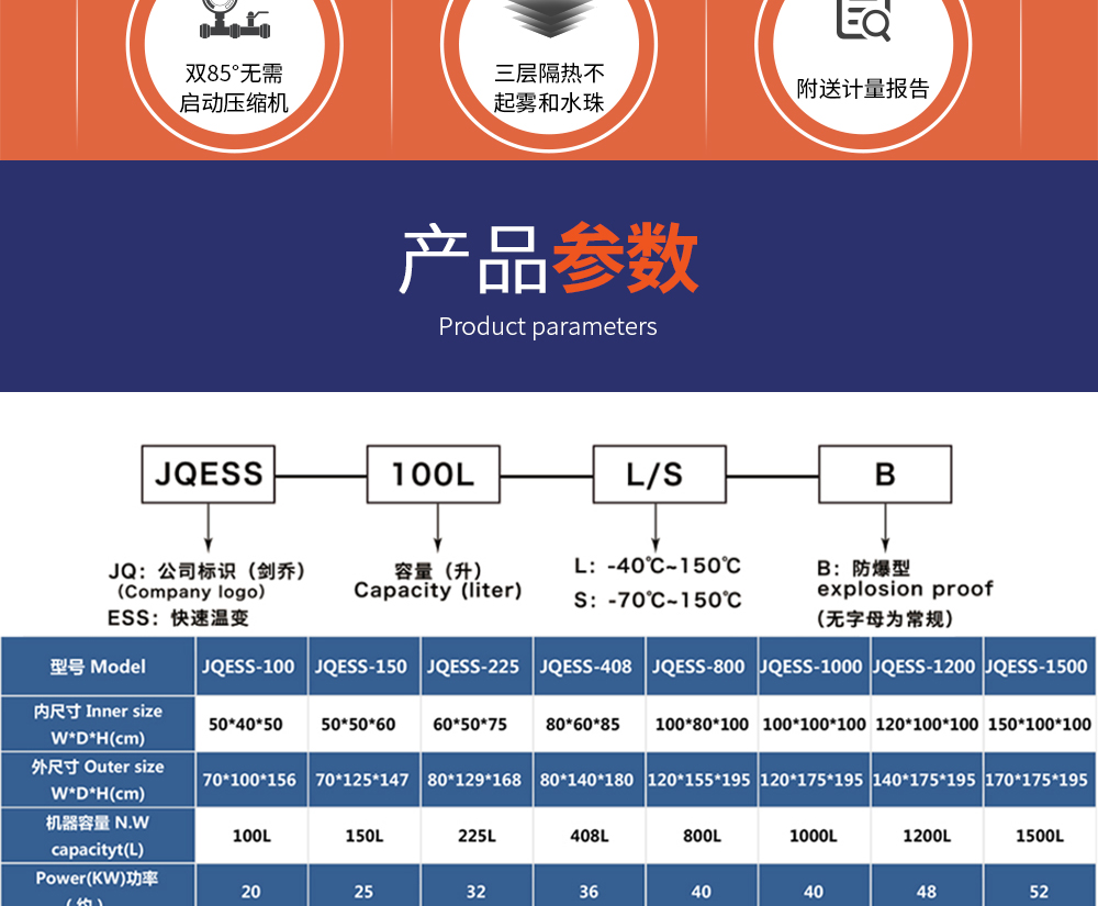 • 快速溫變試驗箱型號命名說明 及 參數(shù)表