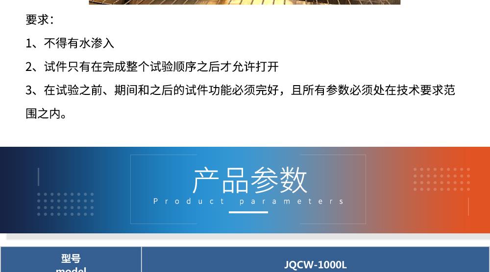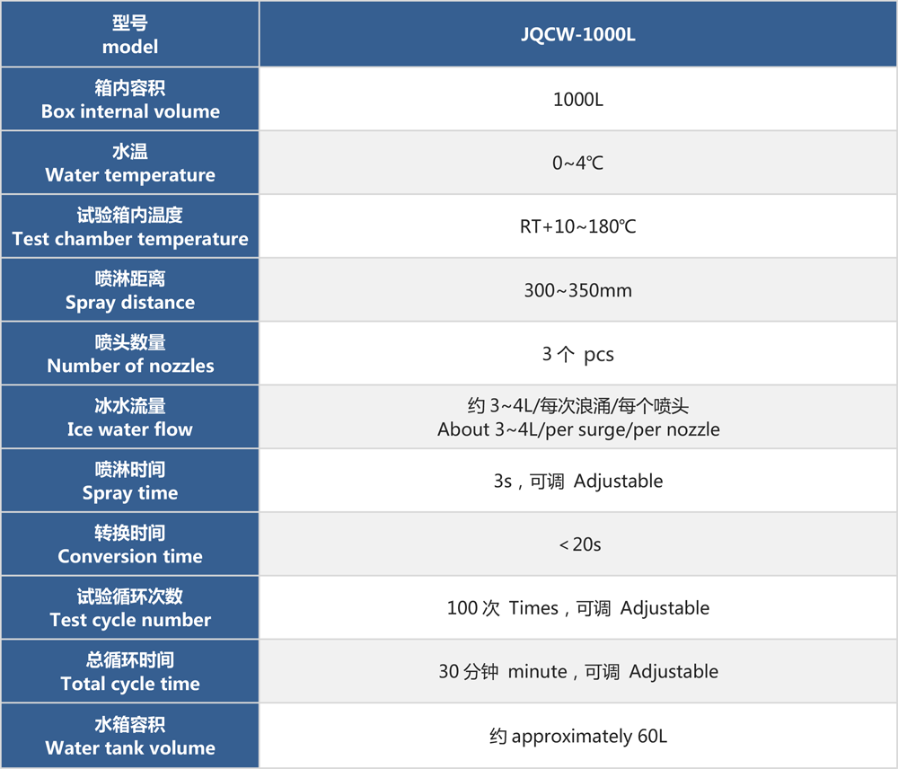 產品型號:JQCW-1000L 品牌:劍 喬 用途:冰水沖擊試驗(浪涌水的溫度沖擊試驗)是模擬部件在駛過積水時而產生的浪涌水的負荷情況,保證部件由于水而急劇冷卻情況下的功能穩(wěn)定性。如車輛在冬季有水路面駕駛時冰水濺落到熱的系統(tǒng)/組件上,失效模式為不同的溫度膨脹系數導致的材料機械破裂或密封失效咨詢熱線:13829135130