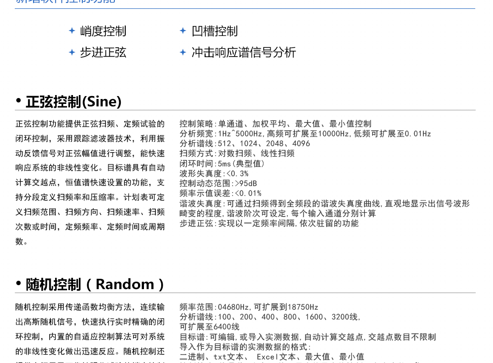 用途:振動(dòng)控制器可實(shí)現(xiàn)全系列振動(dòng)模式,包括隨機(jī)控制、正弦控制,典型沖擊控制、沖擊響應(yīng)譜控制、復(fù)合振動(dòng)、路譜仿真以及地震波模擬。同時(shí),為了進(jìn)一步創(chuàng)新振動(dòng)控制技術(shù),以適應(yīng)更